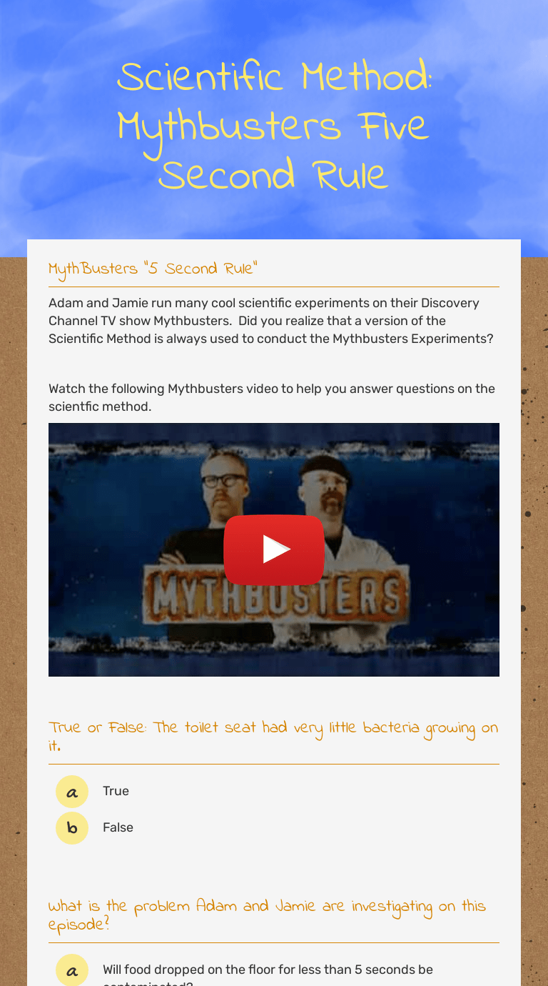 Worksheet for any mythbusters episode. Mythbusters experiments are use to help learn independent and dependent variables. Inhaltsverzeichnis · 2.1 jamie hyneman · 2.2 adam savage · 2.3 das „bauteam" · 2.4 dr. Conceptual science lessons is a convenient place for science teachers to find the resources, knowledge, and ideas they need to teach today's generation of . I use this digital worksheet as a google doc for my science class for any mythbusters episode i show in class.